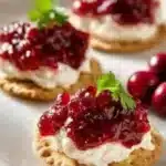 - Spread cream cheese on a serving platter and top with the cranberry mixture.